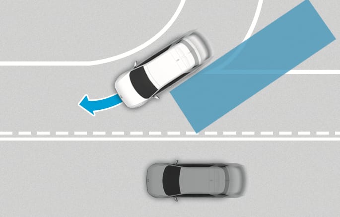 Der Totwinkel-Kollisionsvermeidungsassistent funktioniert nicht ordnungsgemäß, wenn Sie auf einer kurvigen Straße fahren. In bestimmten Fällen erkennt das System das Fahrzeug in der Nachbarspur nicht.
