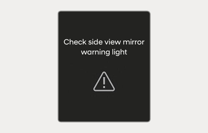 Wenn die Warnleuchte der Seitenspiegel nicht richtig funktioniert, erscheint die Warnmeldung „Seitenspiegel-Warnleuchte prüfen“ mehrere Sekunden lang auf dem Kombiinstrument, und die Hauptwarnleuchte (