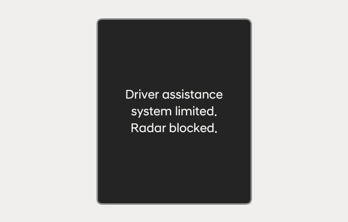 In diesem Fall erscheint die Warnung „Fahrerassistenzsystem begrenzt. Radar blockiert“ auf dem Kombiinstrument angezeigt.