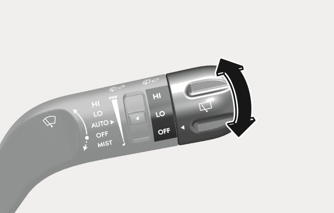 Der Heckscheibenwischer- und Waschanlagenschalter befindet sich am äußeren Ende des Scheibenwischerschalters. Drehen Sie den Schalter in die gewünschte Position, um den Heckwischer und die Heckscheibenwaschanlage in Betrieb zu setzen.