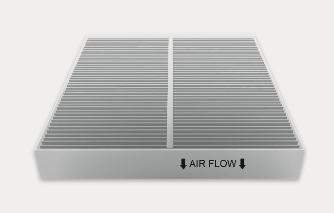 Install a new cabin air filter in the correct direction with the arrow (↓) symbol facing downwards, to prevent noise and reduce effectiveness.