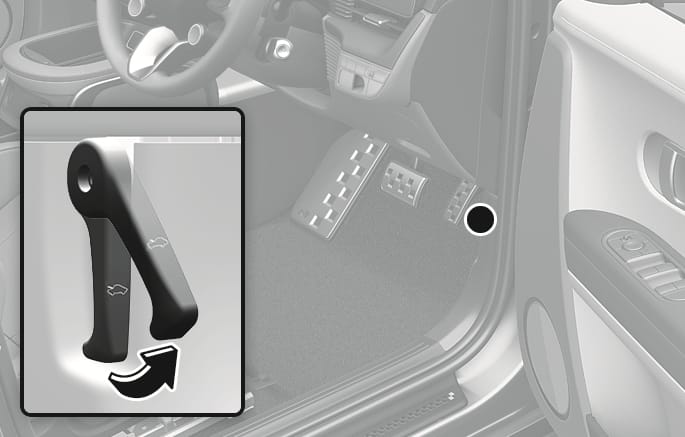 Pull the bonnet release lever to unlatch the bonnet. The bonnet pops open slightly.