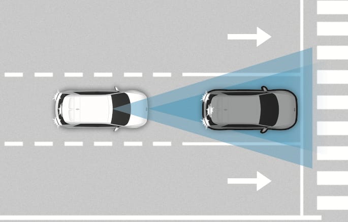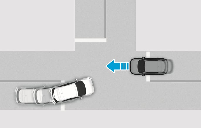 Junction Crossing function can help avoid a collision with oncoming vehicles on the left or right side when crossing an intersection by applying emergency braking.