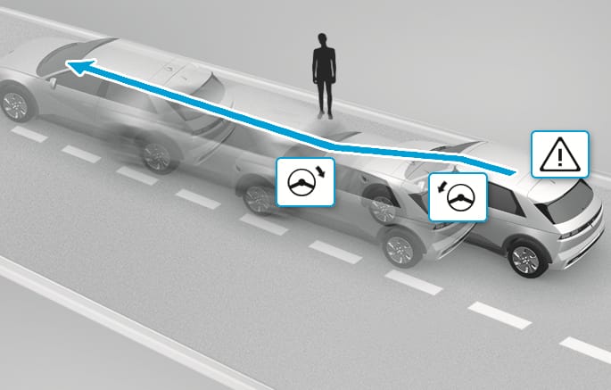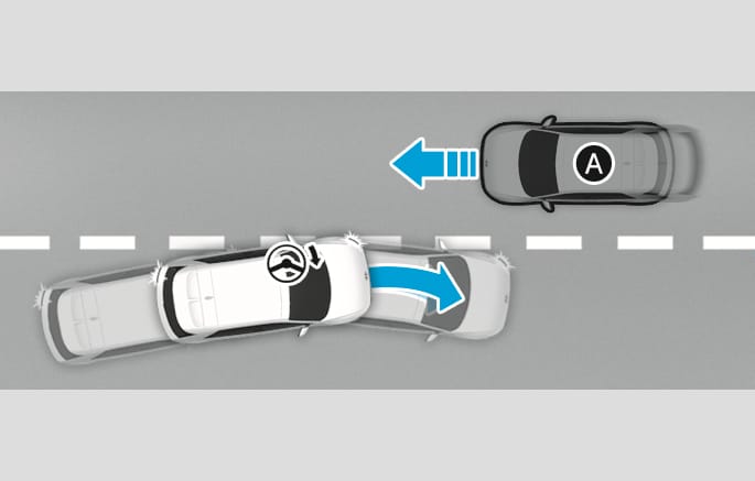 Evasive Steering Assist function helps avoid a collision with a vehicle, powered two-wheeler, pedestrian or cyclist ahead in the same lane. When a risk of collision is detected, Evasive Steering Assist function will warn the driver and if the driver steers to avoid collision it will assist the driver's steering.