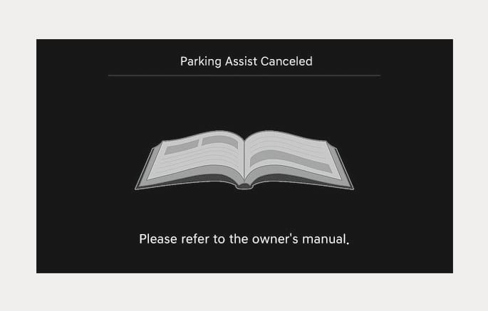 When Remote Smart Parking Assist is not working properly, the 'Check Parking Assist' warning message will appear on the infotainment system. If the message appears, stop using Remote Smart Parking Assist, and have the vehicle inspected by an authorized HYUNDAI dealer.