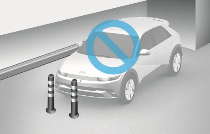 Remote Smart Parking Assist performance may reduce or collision with an obstacle may occur when there is a narrow object, circular pillar, square pillar, or a pillar surrounded by objects such as a fire extinguisher, etc., near the parking space. The driver should park the vehicle manually.