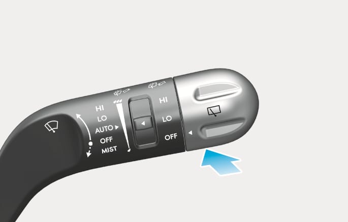 Push the lever away from you to spray rear washer fluid and to run the rear wipers 1-3 cycles. The spray and wiper operation continues until you release the lever.