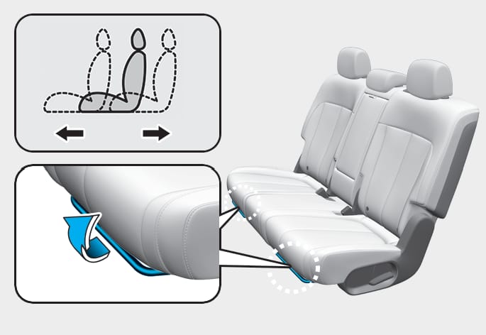 Route the seat belt webbing to the outward of the rear seat to prevent the belts from being trapped behind or under the seats.
