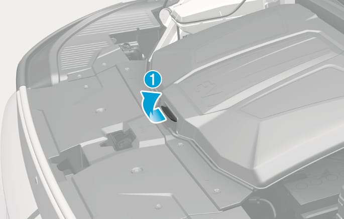 Lift up the front trunk cover while depressing the front trunk lever (1).