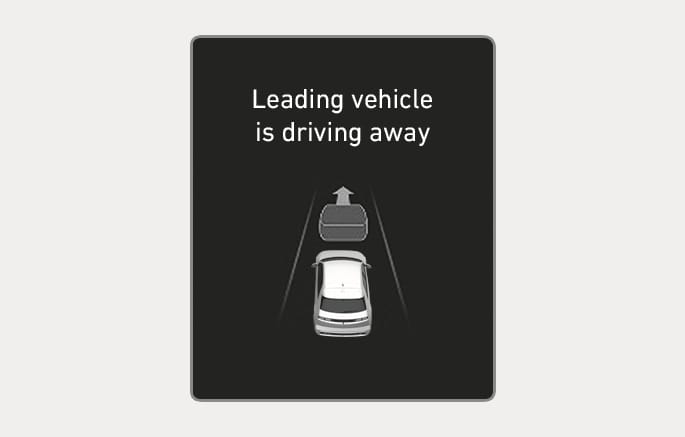 When a detected vehicle in front departs from a stop, Leading Vehicle Departure Alert will inform the driver by displaying the "Leading vehicle is driving away" message on the instrument cluster and an audible warning will sound.
