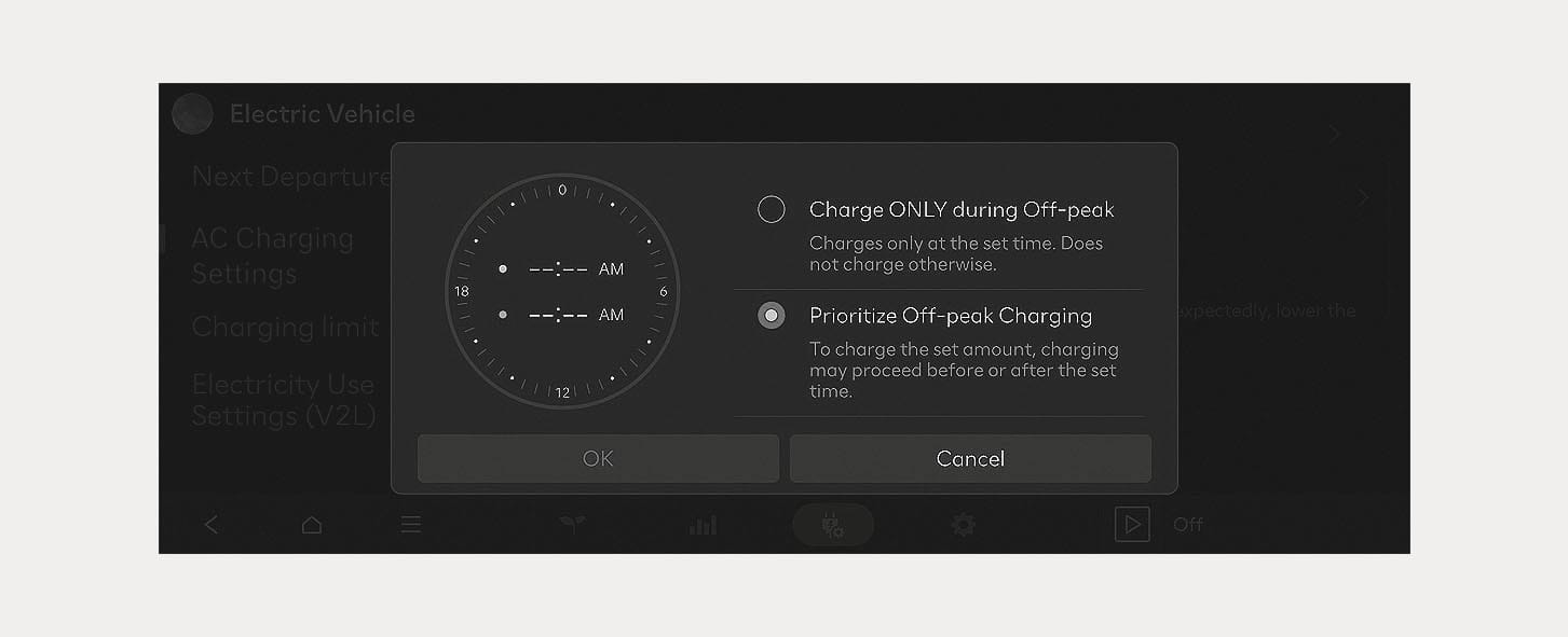Charge ONLY during Off-peak: Charging is activated only during the off-peak time. It may not be able to reach the target battery charge level.