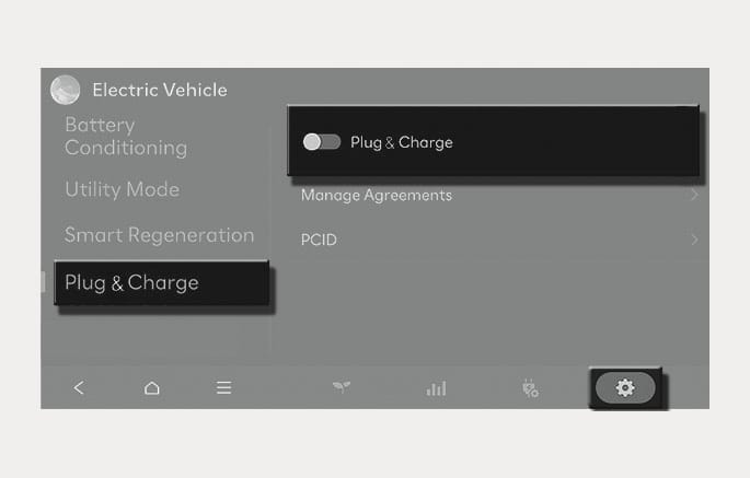 Ĵ > Plug & Charge, and then select Plug & Charge to turn on the function.