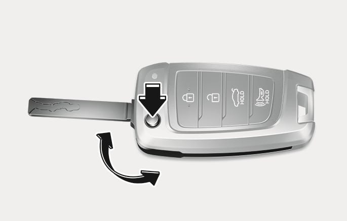 To unfold the key, press the release button. The key unfolds automatically.