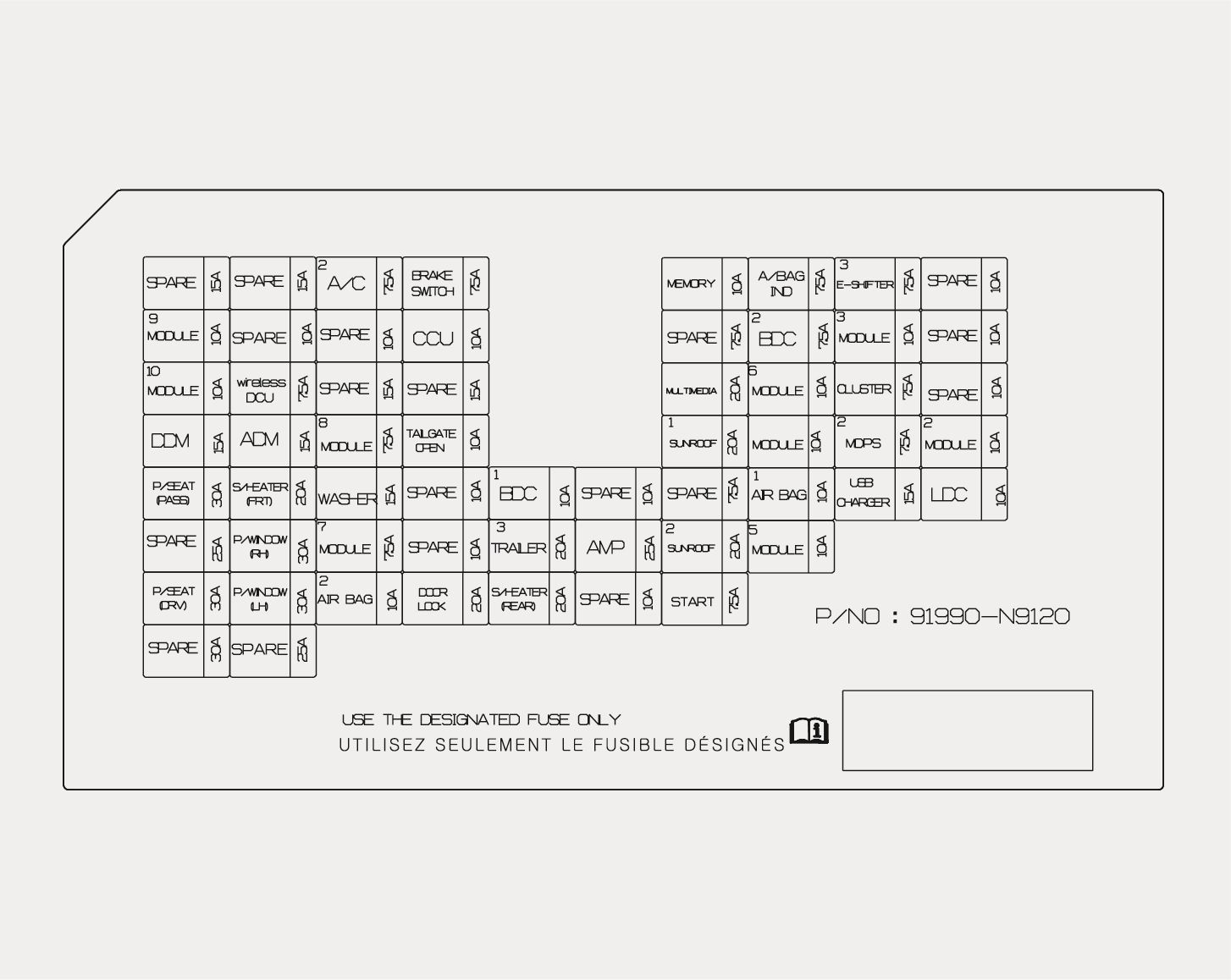 PDC (Fuse - P/SEAT (DRV), P/SEAT (PASS), DDM, ADM, P/WINDOW (LH), P/WINDOW (RH), wireless DCU, S/HEATER (FRT), MODULE9, MODULE10) |