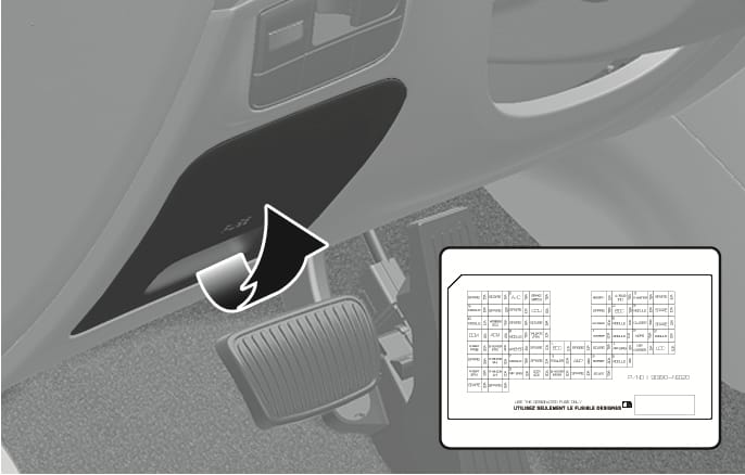 Inside the fuse panel cover, you can find the label describing fuse names and ratings.