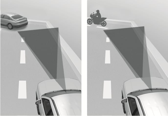 For limitations in the driver’s blind spot areas and precautions for the rear corner radars, refer to the "Blind-Spot Collision-Avoidance Assist (BCA)" section in this chapter.