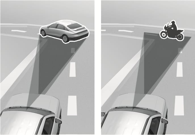 When a vehicle or powered two-wheeler moves into your lane from an adjacent lane, it cannot be detected by the sensor until it is in the sensor's detection range. Forward Collision-Avoidance Assist may not immediately detect the vehicle or powered two-wheeler when the vehicle or powered two-wheeler changes lanes abruptly. In this case, you must maintain a safe braking distance, and if necessary, steer your vehicle and depress the brake pedal to reduce your driving speed in order to maintain a safe distance.
