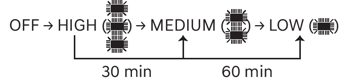 Each time you push the switch, the temperature setting of the seat is changed as follows: