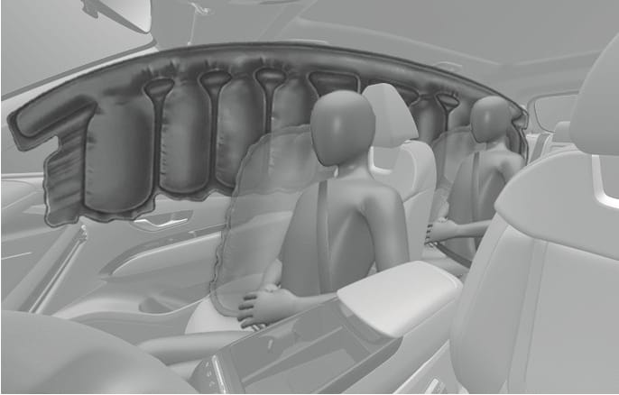 Curtain airbags are located along both sides of the roof rails above the front and rear doors.