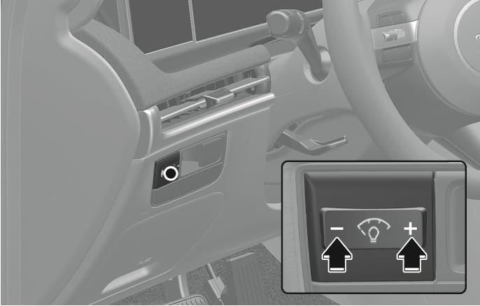 When the vehicle's parking lights or headlights are on, press the illumination control switch to adjust the brightness of the instrument panel illumination.