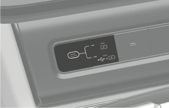Do not insert foreign objects or spill liquid into the outlet. The USB charging terminal may be damaged.
