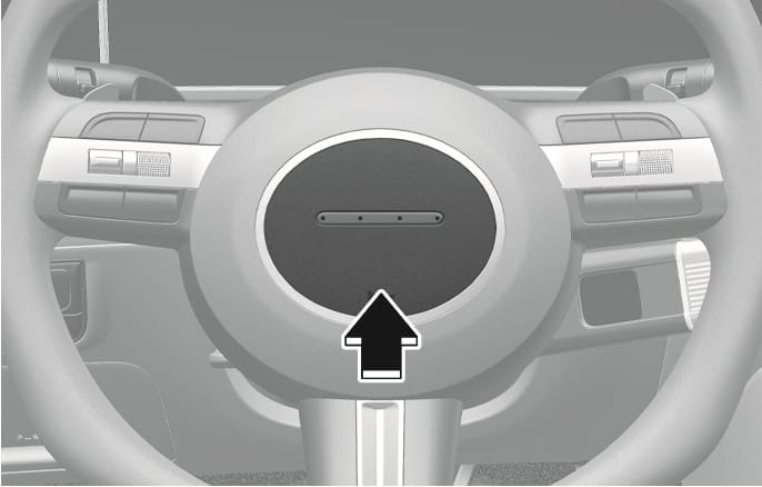 To sound the horn, press the area indicated by the horn symbol on your steering wheel (see illustration). The horn operates only when this area is pressed.