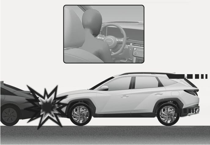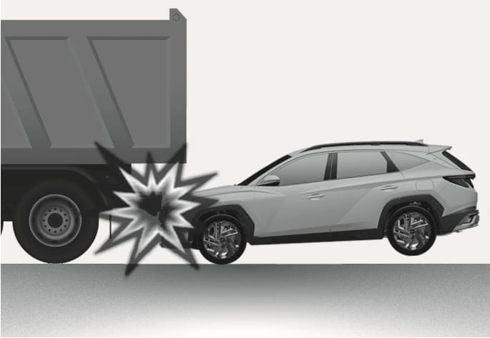 Just before impact, drivers often brake heavily. Such heavy braking lowers the front portion of the vehicle causing it to "nosedive". This is particularly important when the vehicle in front has a higher ground clearance. Airbags may not inflate if your vehicle is in a "nosedive" condition because the collision forces detected by the sensors may have been significantly reduced.