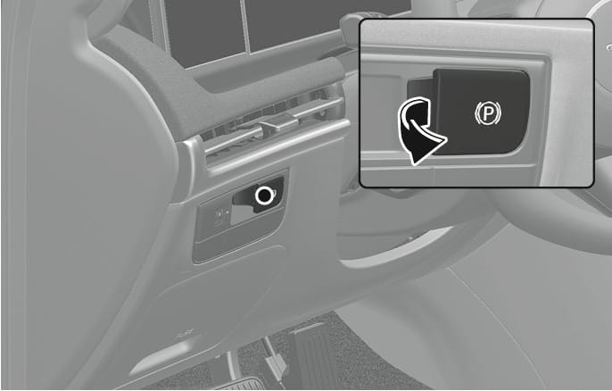 Depress the brake pedal and release the parking brake manually with the EPB switch before you drive downhill or when backing up.