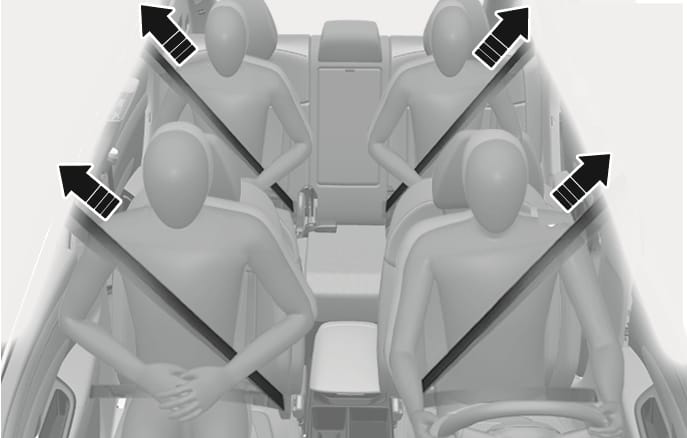 Your vehicle is equipped with driver's and front passenger's and rear passengers pretensioner seat belts (retractor pretensioner). The pretensioner makes sure the seat belts fit tightly against your body in certain frontal or side collision(s). The pretensioner seat belts may be activated in some crashes where the frontal or side collision(s) is severe enough, together with the airbags.