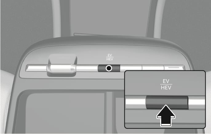 Pressing the EV/HEV button changes the plug-in hybrid system modes, between Electric (CD) mode and Hybrid (CS) mode.