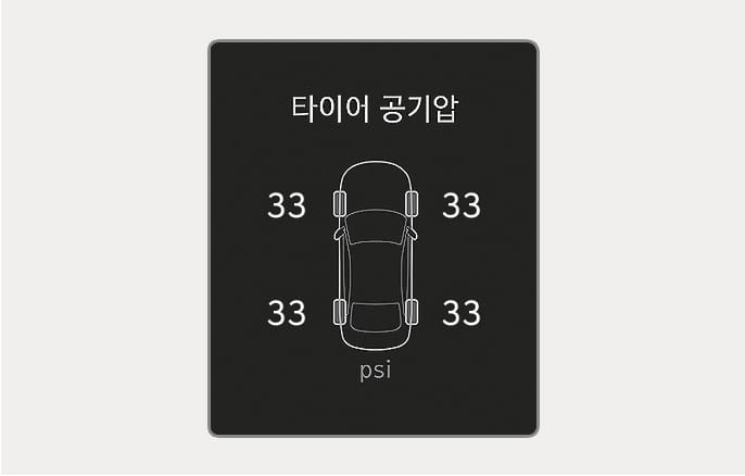 클러스터를 통해서 개별 타이어 공기압을 확인할 수 있습니다.