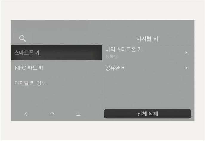 등록된 디지털 키(스마트폰)가 없으면 전체 삭제 항목을 선택할 수 없습니다.