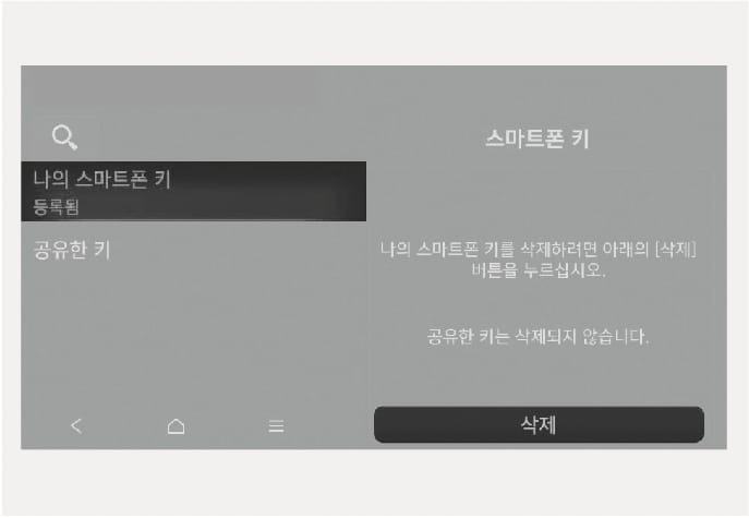 스마트폰에서 디지털 키를 삭제하는 경우 차량에 등록된 디지털 키(스마트폰)도 삭제됩니다.