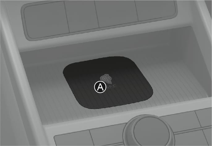 스마트폰의 NFC 안테나를 실내 인증 패드(무선 충전 패드) 중앙에 올린 후 브레이크 페달을 밟고 시동 버튼을 눌러 시동을 거십시오.