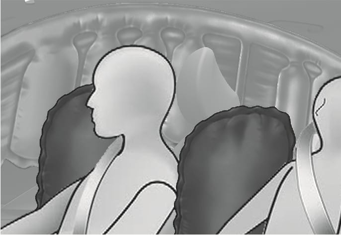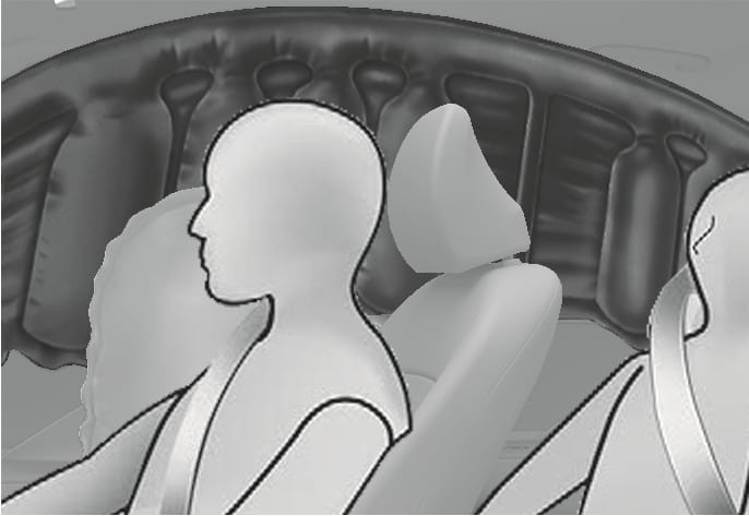 Gli airbag a tendina sono ubicati lungo ambo i lati dei corrimano del tetto, sopra le porte anteriori e posteriori.