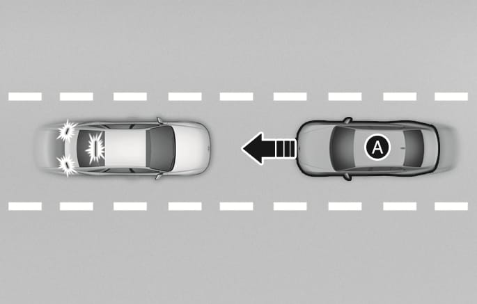 L’assistenza anti-collisione anteriore rileva un veicolo, un motociclo, un pedone o un ciclista davanti al veicolo lungo la strada e segnala al conducente la possibilità di collisione con un messaggio di avviso nel quadro strumenti e un segnale acustico. L’assistenza anti-collisione anteriore può anche assistere frenando il veicolo per contribuire a ridurre la velocità di collisione o a evitare la collisione.
